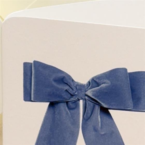 This elegant card features a beautifully understated design, adorned with a simple blue bow that adds a touch of classic charm and a pop of colour. It is printed on high-quality, premium cardstock, providing a luxurious feel that mirrors the artisan quality of our floral collections.