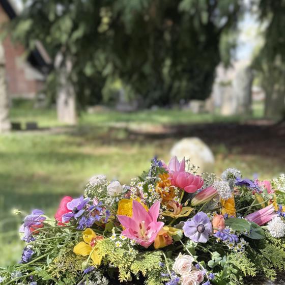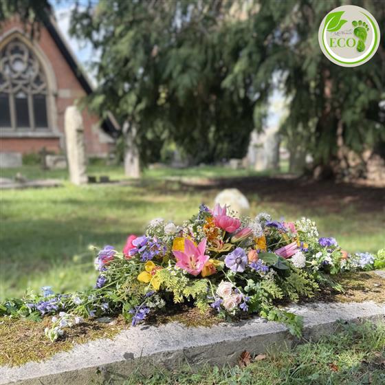 This seasonal floral arrangement is tailored to your choice; simply select your preferred colour palette from the menu. Our team will compose a bespoke design using the finest eco-conscious blooms and locally sourced British flowers wherever possible. Perfectly suited for traditional services or natural burial grounds, this sustainable casket spray ensures a beautiful, dignified farewell with an ultra-low carbon footprint.