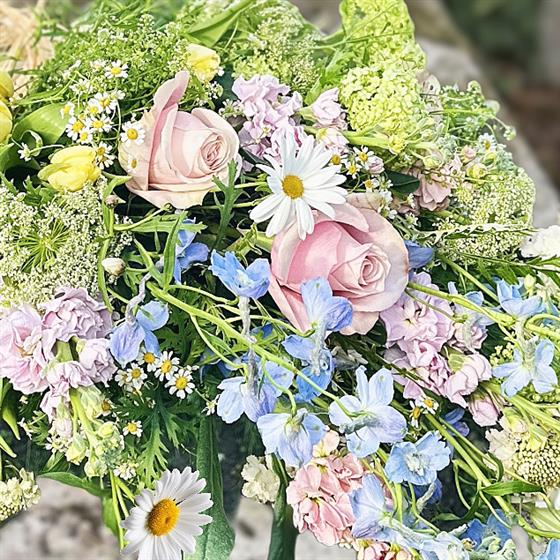 This plastic-free funeral sheaf can be tailored to your requirements; simply select your preferred colour palette from the options below. Our artisan florists will then hand-tie a bespoke selection of the finest seasonal blooms, prioritising locally sourced British flowers whenever possible. Designed to lie flat, this graceful arrangement is a perfect choice for those seeking a dignified, understated, and fully compostable tribute for a service or a natural burial ground.